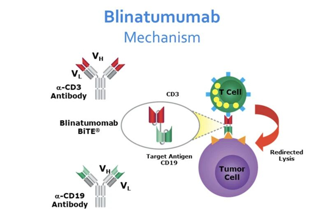 - 临床:Blinatumomab在急性淋巴细胞白血病(ALL)中显著提高完全缓解率,已成为标准免疫治疗药物。